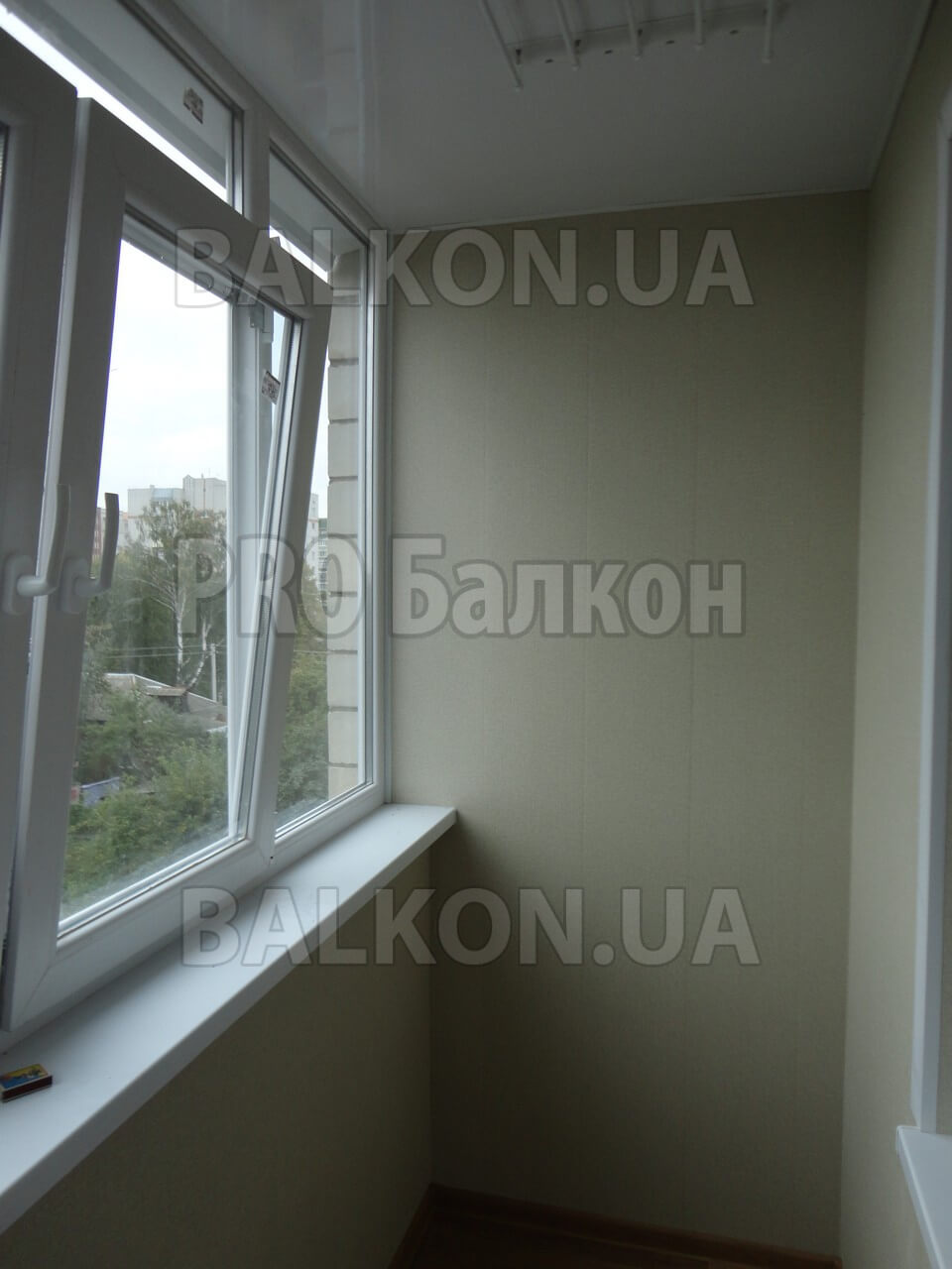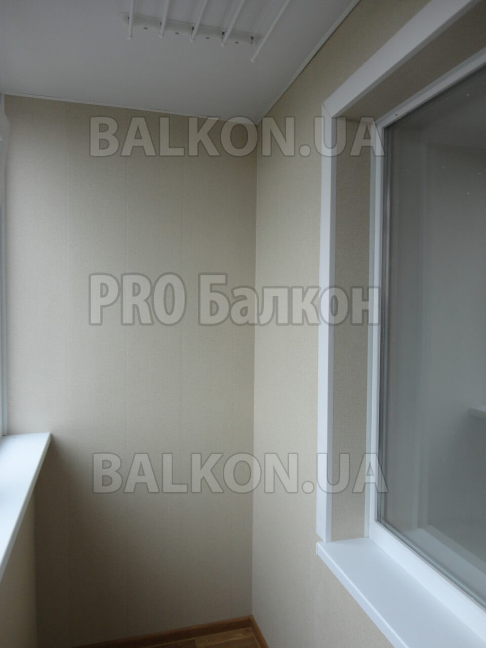 — Остекление лоджии — Отделка лоджии панели — Утепление лоджии — Пол — линолеум — Потолок — бесшовные панели — Потолочная сушка