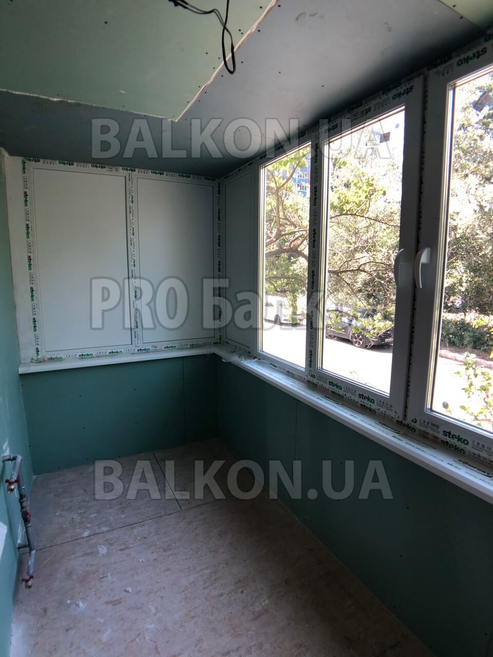 — Вынос по полу — Наружная отделка сайдинг — Теплое Остекление балкона — Rehau euro 70 + 2кам ЭЭ пакет — Подготовка под продление квартиры — Обесшумка козырька